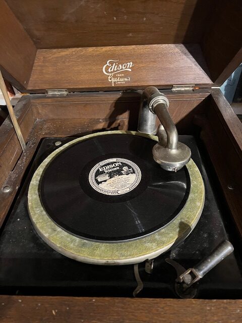 This is an example of one of Edison’s players a “Disc Phonograph”. Several designs were made and this one is a cabinet machine that plays really well.