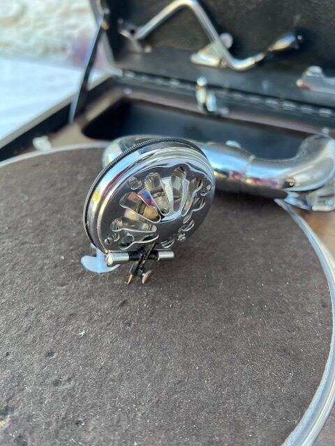 The gramophone has been serviced and is in very good condition. The HMV 102 is the most sort after portable gramophone at the moment and finding good examples is getting much harder.