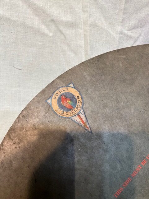 This machine first appeared in the US in about 1915 but an almost identical version called the “Guiniphone” was later made in the UK by the Vickers Armstrong Company, famous for making armaments. The gramophone design was one of the few that attempted to do away with a conventional sound-box and used a large cardboard cone to act as a resonator. This rare example has its original cardboard cone with “Polly Oscillator ” logo but , at the time, differently designed cones could be bought that could be self constructed. A replica of an early design is included.