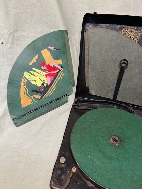 The gramophone is in fair condition in an all metal case and actually plays very well for such an unusual concept. Definitely a collector’s item
